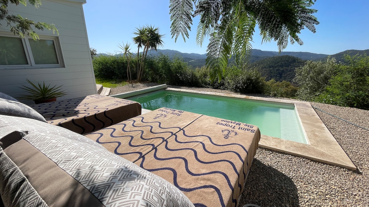 Cette propriété d'exception vous est entièrement réservée. Aucun autre voyageur ne la partagera avec vous. Proche de Sainte-Maxime, nichée en plein Massif des Maures, au calme absolu. Piscine à débordement & spa. Triple séjour, 4 chambres climatisées, 2 cuisines, 2 salles de bain, salle d'eau, salle de billard, garage, pool house, grandes terrasses ombragées. Aucun vis à vis. Cadre idyllique de la Côte d'Azur à 4km de l’autoroute A8, à 45mn de l’aéroport de Nice et 35mn de St Tropez.