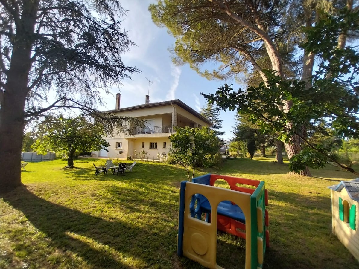 Bienvenue à la villa des Palmiers🌴, proche de toutes commodités à 5km d'Agen cette villa de 130m² dans un quartier résidentiel sans vis à vis à coté du complexe sportif, vous offre confort et tranquillité. 4 chambres avec télé, 2 salles d'eau, 2 wc indépendants, cuisine extérieure, plancha, terrain de pétanque. Piscine d'eau salé 8x4 chauffée à 26° de juin à fin septembre. ❗️Mai et octobre en option merci de nous consulter. ⚠️ Novembre à fin avril la piscine ne sera pas chauffée.