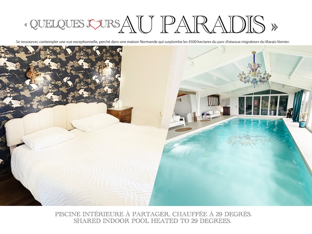 Le logement indépendant situé sur une propriété commune avec les propriétaires, sans mitoyenneté ,terrain clos arboré, parking , portail électrique. La piscine à partager avec les propriétaires est extérieure non couverte, elle est ouverte et chauffée de JUIN à mi-septembre (suivant condition climat). A 3 KM, se trouve le bourg de Monfort/Risle, différents commerces(boulangerie, supermarché ). Activités: canoë-kayak, randonnée en forêt, accrobranche, voie verte )