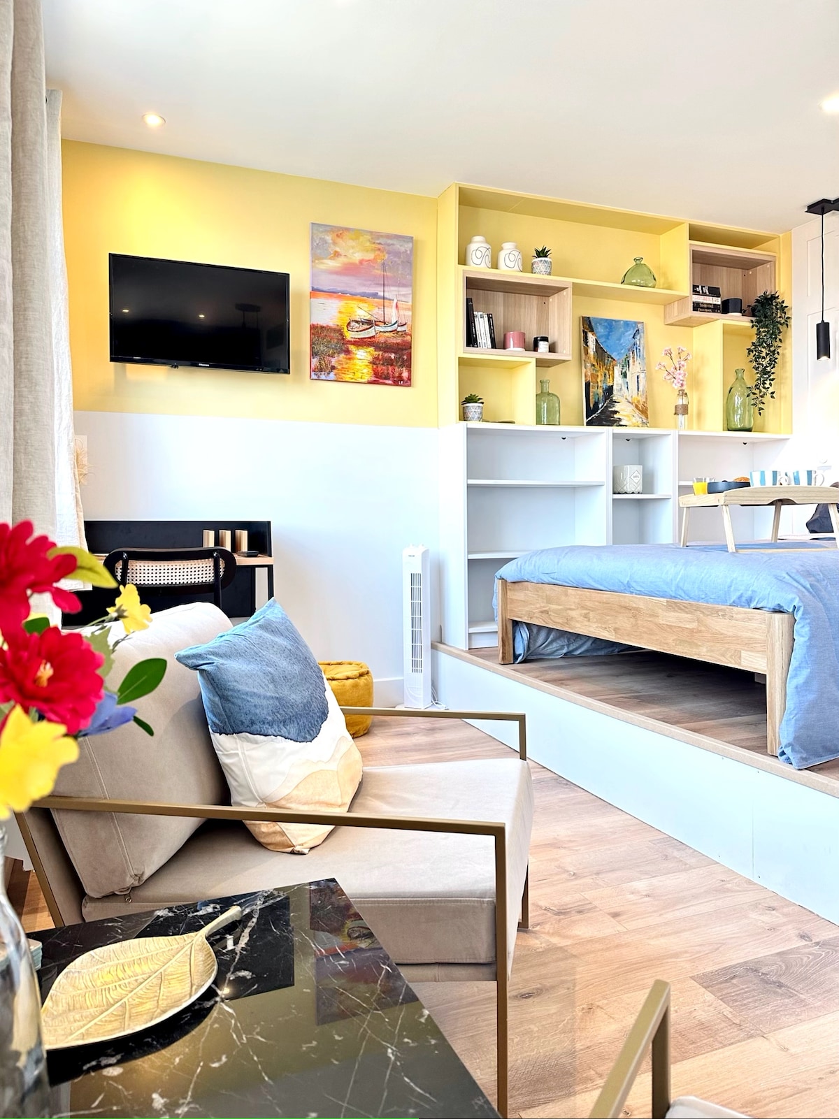 Notre studio de 25m2 situé en plein cœur d'Arcachon, a été soigneusement aménagé pour optimiser chaque centimètre carré. L'intérieur est décoré avec goût, offrant une ambiance moderne, lumineuse et accueillante. En plus du confortable lit, de la cuisine entièrement équipée et de la salle de bains moderne, vous trouverez également un coin lecture où vous pourrez vous détendre et plonger dans un bon livre. C'est l'endroit idéal pour se reposer après une journée bien remplie à explorer la région.
