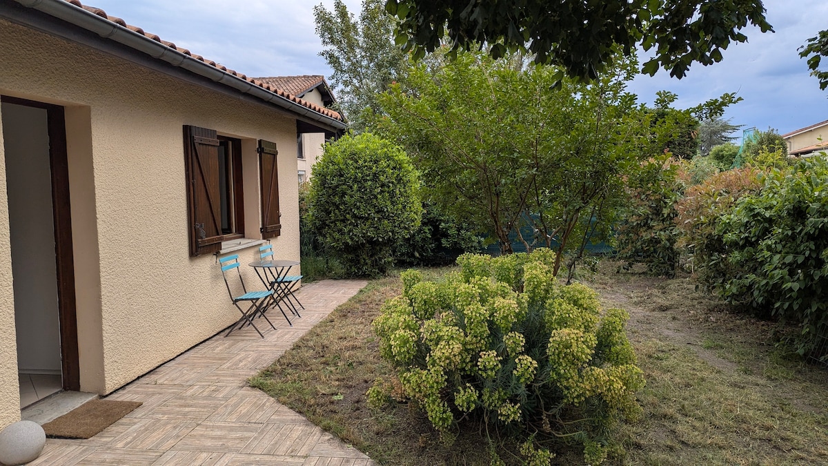 Welcome to our charming guesthouse located in a peaceful residential area of Blanquefort. It features a cozy bedroom, a bright living room with a fully equipped kitchen, and a bathroom. You will also have access to a parking space on our enclosed property. Conveniently located just 5 minutes from tram line C, "Blanquefort station" (Bordeaux - about 25 minutes). Quick access to the Médoc region and its renowned châteaux. Please note, the house is not wheelchair accessible.