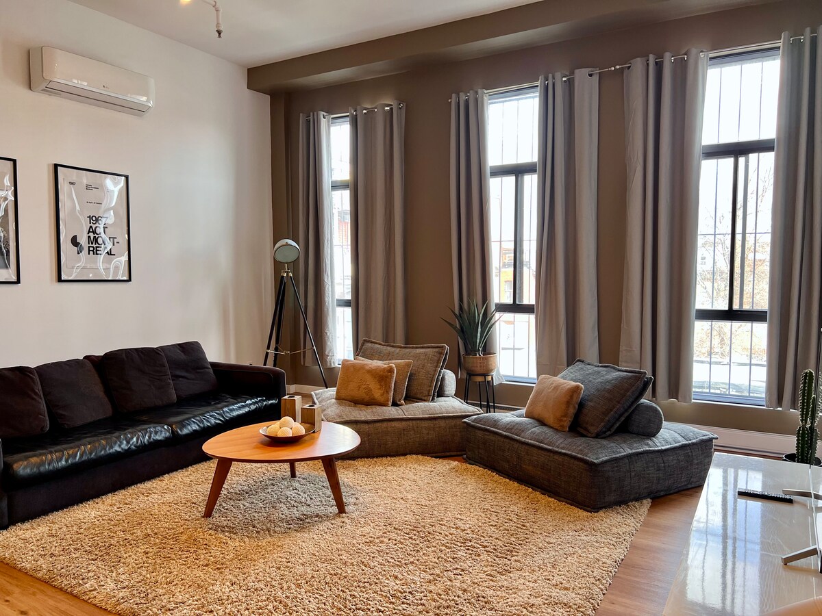 Experience Montreal from our 1,850 sq. ft. Heritage Greystone loft. This 3rd-floor sanctuary in the Plateau features an open-concept layout, brick walls, and a rare find: 3 spacious bedrooms, each with a private en-suite bathroom. Perfect for families or groups seeking luxury and privacy in a 100% walkable neighborhood. Comfortably accommodates your group with extra sofa-beds. Winter Promotion Take advantage of our winter promotional discounts!