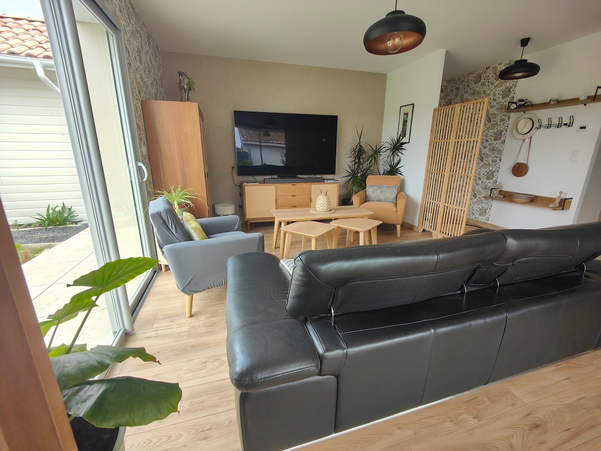 Niché sous les chênes et au calme nous vous invitons à découvrir notre charmant studio neuf de 40m2, idéalement situé entre Arcachon et le Cap Ferret. Ce studio, à la fois spacieux et confortable, est équipé d’une cuisine moderne, d’une climatisation réversible et d'un espace de travail équipé d’une connexion fibre. Une place de parking est à votre disposition avec possibilité de recharger votre véhicule électrique.