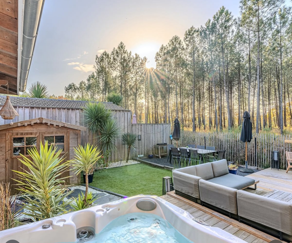 Maisonnette au coeur des pins située entre lac et océan. Environnement calme et sans vis-à-vis, idéal pour se ressourcer et se reposer. Pour ceux qui veulent faire la fête, mieux vaut choisir un lieu plus propice. Plages et centre ville accessibles en pistes cyclables à environ 1,5 km. Deux vélos adultes à disposition, barbecue, équipement intérieur tout confort : Lave-linge, lave-vaisselle, télévision, wifi... Linge de maison, linge de toilette et linge de lit fournis. Place de parking privée