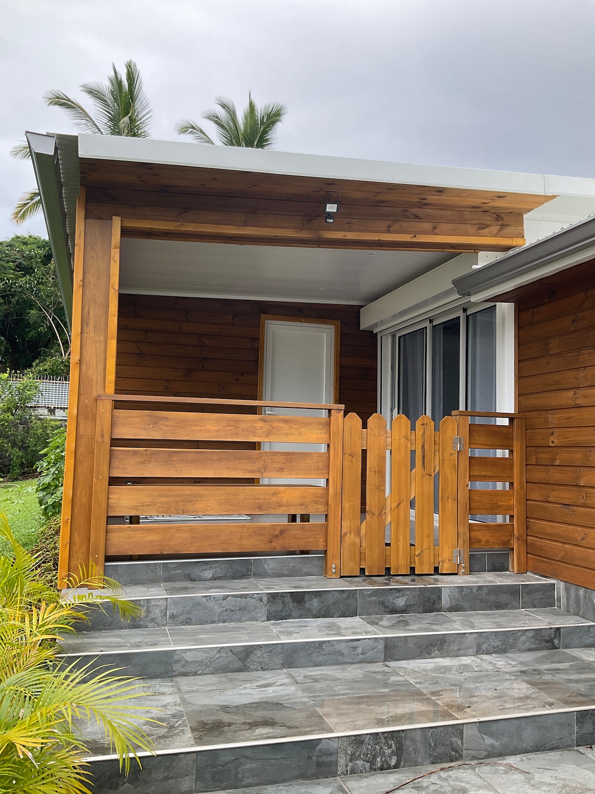 Dans villa 200 m d'altitude avec piscine chauffée : petit bungalow indépendant dans jardin (chambre parentale, lit double, salle d'eau, cuisine ext.). Accès partagé à une terrasse couverte avec une grande table, au jardin et à la piscine. Nous avons dans le jardin un chien charmant. Il y a un supplément de 6€ par nuit si vous êtes 2. Des commerces de proximité à moins de 10 min à pied. Saint-Paul centre à 20 min en voiture et plages à 30 min. Transports en commun possibles mais compliqués.
