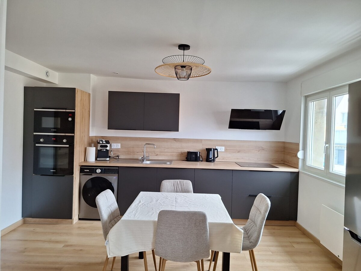 Joli appart rénové situé au calme parfait pour un moment relax en amoureux : -suite avec un grand lit de qualité et une baignoire balnéo double avec 30 jets massants. -séjour lumineux avec tv, cuisine équipée -Douche et WC séparés Tout équipé linge, vaisselle, sèche cheveux, peignoirs, micro ondes, frigo possibilité arrivée autonome par boîte à clé Attention nous ne sommes pas dans le centre mais au calme à 5min de tout en voiture ou bus. Stationnement facile devant