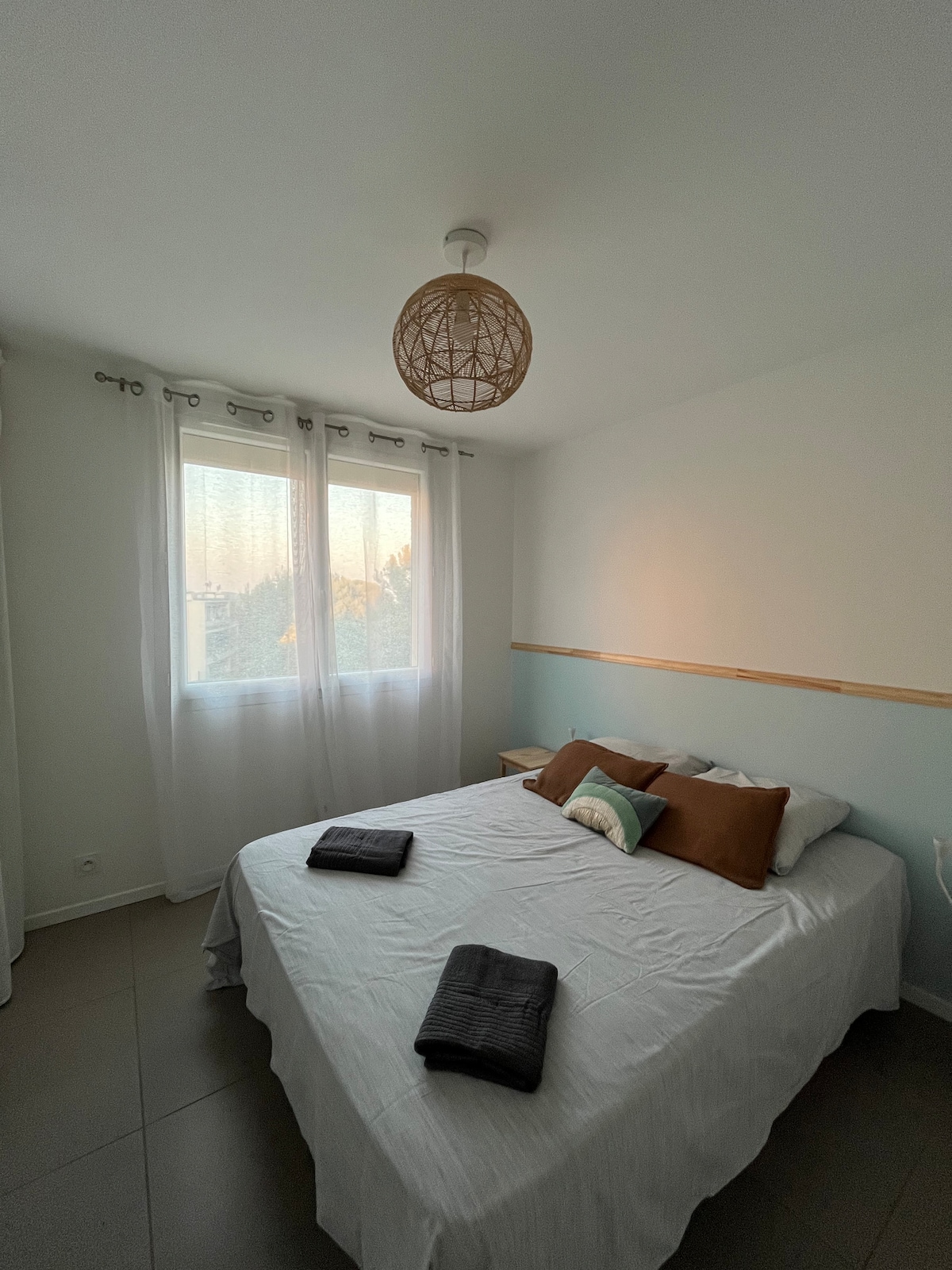 Bright and spacious apartment of 90m² on the 1st floor of a family house, with open sea view and private southern terrace. Located in a quiet environment, just 2.4 km from the beaches and in the immediate vicinity of the trails, it is ideal for savoring a breakfast in the sun or an outdoor evening. Completely independent entrance, secure private parking and full reversible air conditioning for optimal comfort.