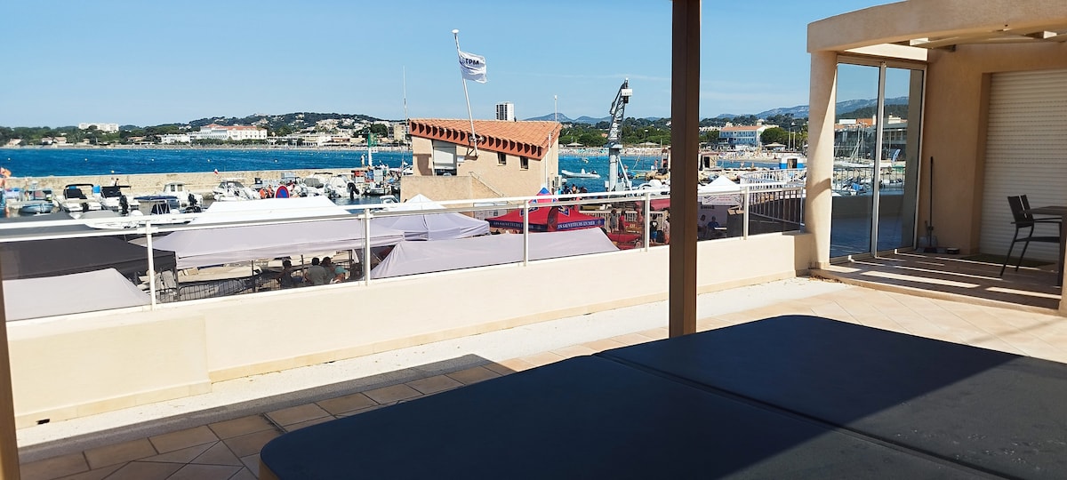 Ce bel appartement-villa avec Spa intérieur et terrasse vue Mer vous offrira une parenthèse de douceur dans un cadre unique sur les hauteurs de Bandol, proche du centre ville, des plages et des commerces. Il se situe dans une résidence sécurisée par un portail électrique, en rez de jardin avec un accès direct sur le palier depuis le parking privée de la résidence. Vous pourrez garer votre véhicule à proximité du logement. Vous bénéficiez d'une jolie vue sur la baie de Bandol et l'île de Bendor.