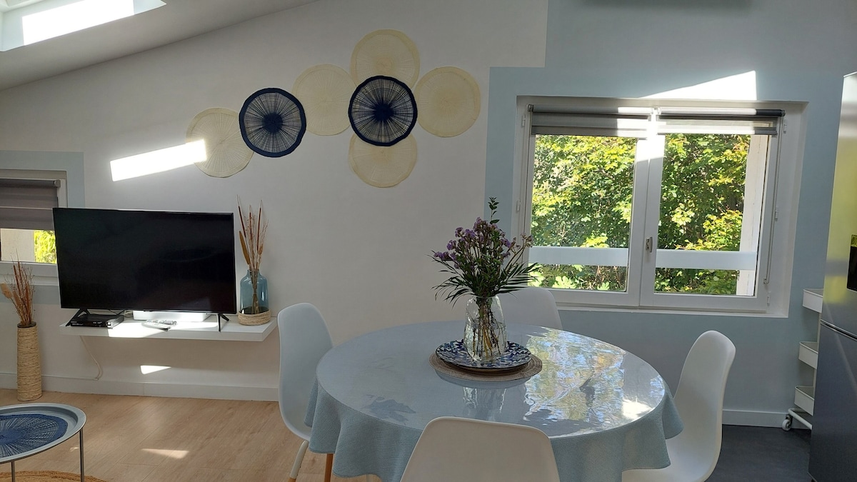 Plongez dans une ambiance unique méditerranéenne proche du centre ville à pied et à 7minutes de la plage. La beauté pure de la chaux et du béton ciré se mêle à la matière brute, sublimée par les imperfections et savoir-faire traditionnel. Un cadre authentique, chaleureux et apaisant, idéal pour vous ressourcer au cœur de la nature. Face à un jardin remarquable classé. Profitez d’un décor méditerranéen épuré, alliant confort moderne,charme artisanal, pour une expérience inoubliable.Ideal couple