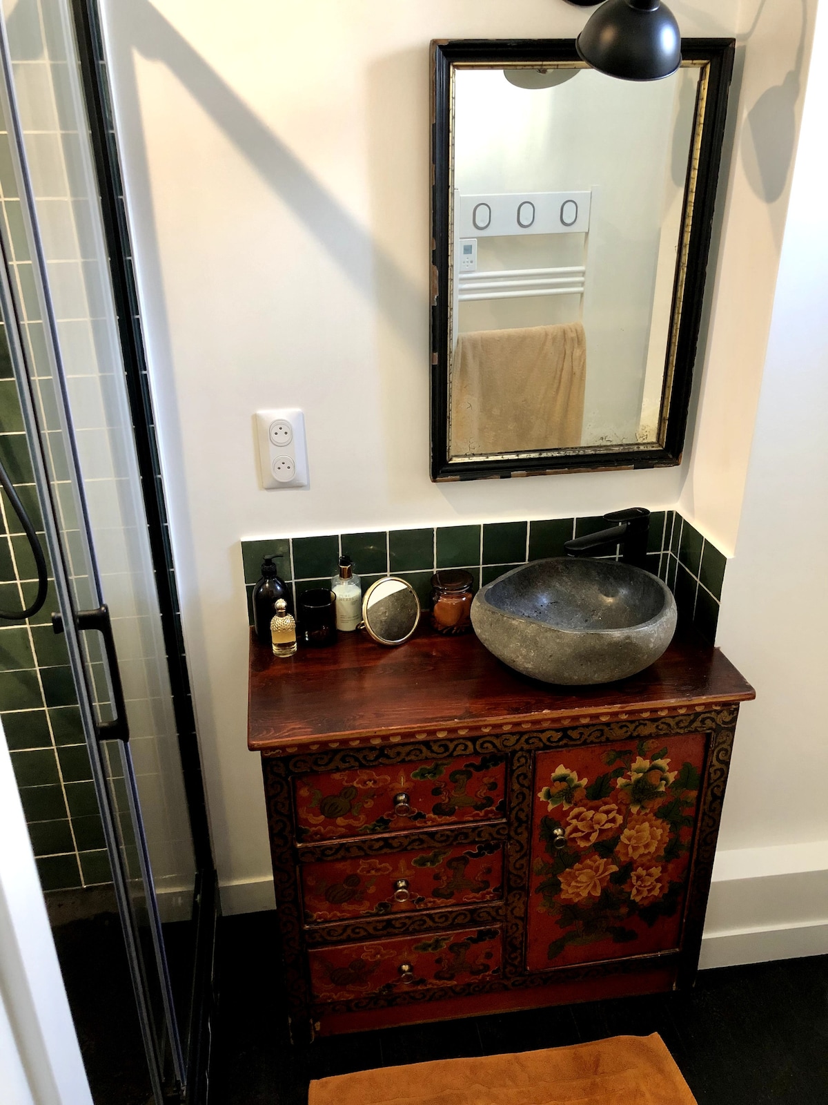 Feel like at your own « pied à terre » or base in the dynamic neighborhood of Pantin. Renovated loft-style apartment with a separate bedroom, just one minute from Hoche metro (Line 5). You can get to the city center in 15 minutes. Ideally located near Parc de la Villette, the Philharmonie, the canal, and Hermès offices. The apartment features a cozy living area, comfortable bedroom, boutique hotel-style bathroom with Italian shower and anti-fog mirror, and a fully equipped kitchen.