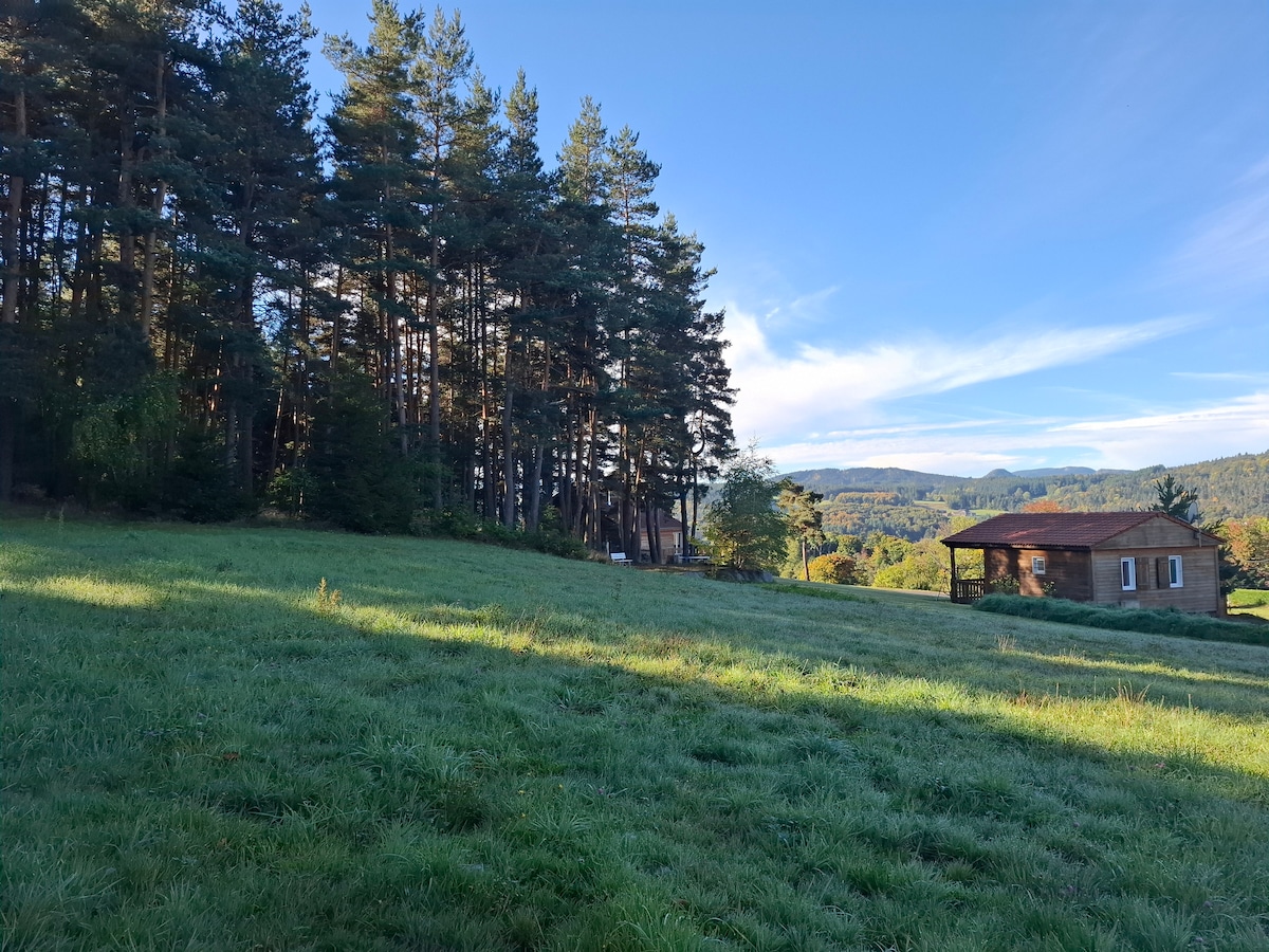 Hexagone en verre, vue sur la rivière, pour une nuit proche de la nature. Laissez-vous bercer par le bruit de l'eau, pique-niquez sur votre terrasse privative, trempez les pieds (ou plus) dans la rivière. A l'intérieur, un lit double et une petite table pour manger en cas de pluie. Vous aurez accès aux toilettes sèches proche du logement, ainsi qu'au "chalet commun" comprenant une cuisine tout équipée, une terrasse couverte (avec jeux), une salle d'eau et WC.