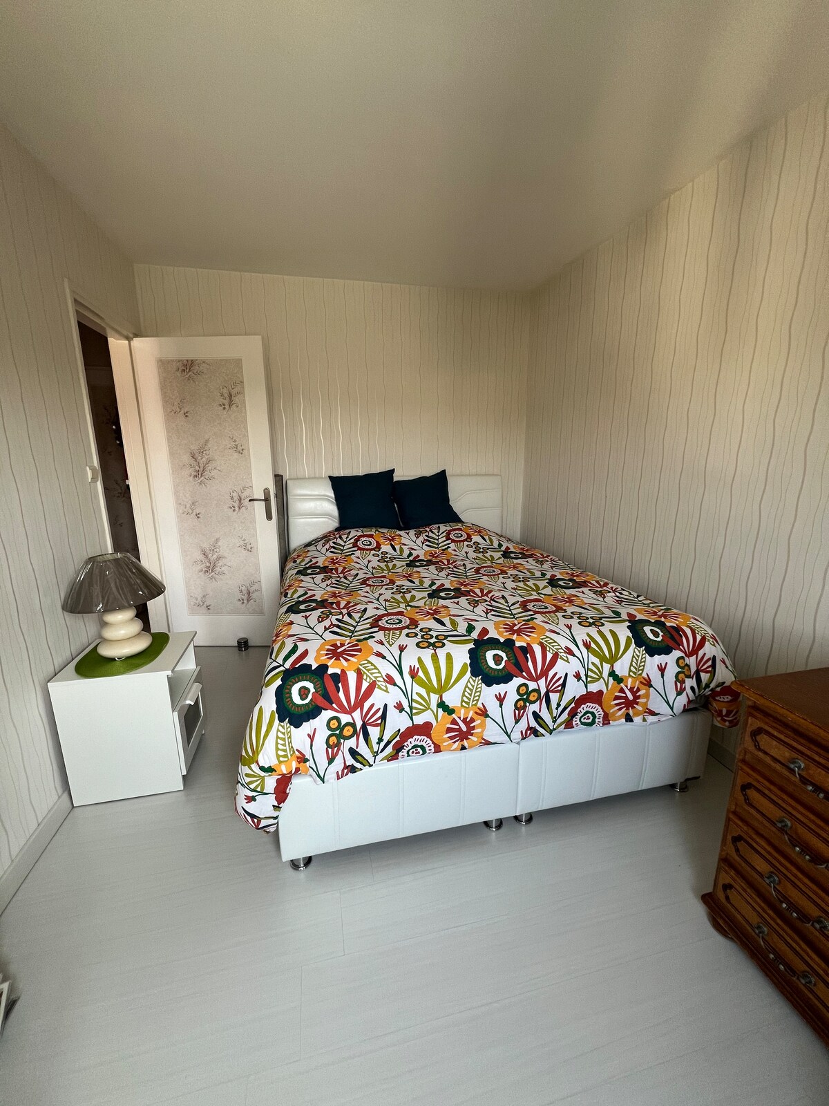 Chambre située sur les hauteurs de St Priest en Jarez, dans un coin calme entouré de verdure et bénéficiant d'une très jolie vue. Totalement indépendante de mon logement: entrée, salle de bain et toilettes privatives. Possibilité de profiter d'un petit coin exterieur à l'entrée du logement et de garer une voiture. Pas de cuisine. Le tram est accessible en 10 min à pied (arrêt Musée d'Art Moderne); L'hôpital Nord en 15 minutes à pied. Proche du musée d'art moderne, du stade Geoffroy Guichard…