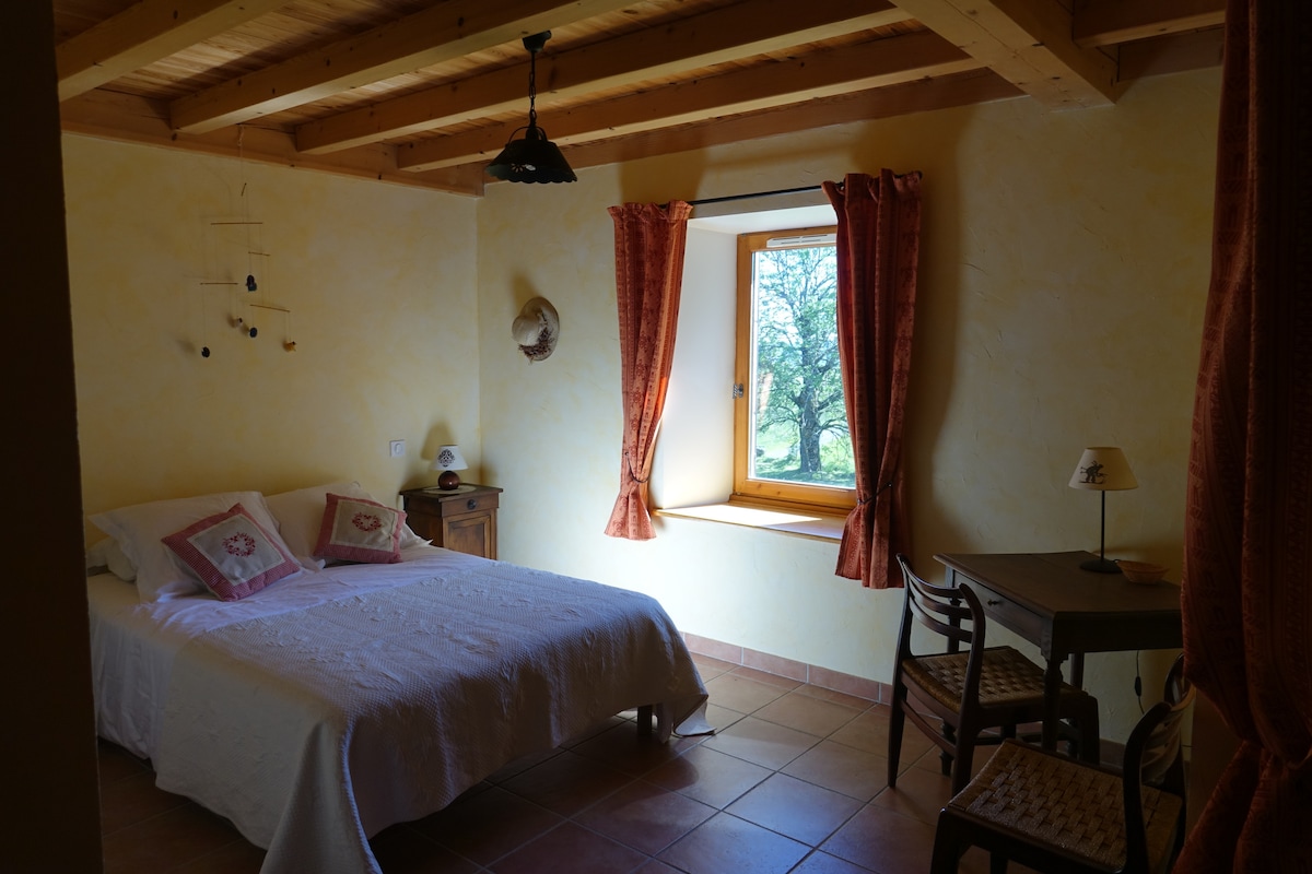 Venez séjourner de 2 à 4 personnes dans une charmante chambre familiale située dans notre ferme rénovée au cœur de la nature. Notre ferme est idéalement située pour un séjour nature : un accès facile le long de la RD15, un environnement fait de prairies et de bois, un accès à la rivière pour la pêche ou la baignade. De plus pour les gourmands nous faisons de la vente directe de fruits rouges en saison estivale et de produits transformés (confitures, coulis ...) le reste du temps.