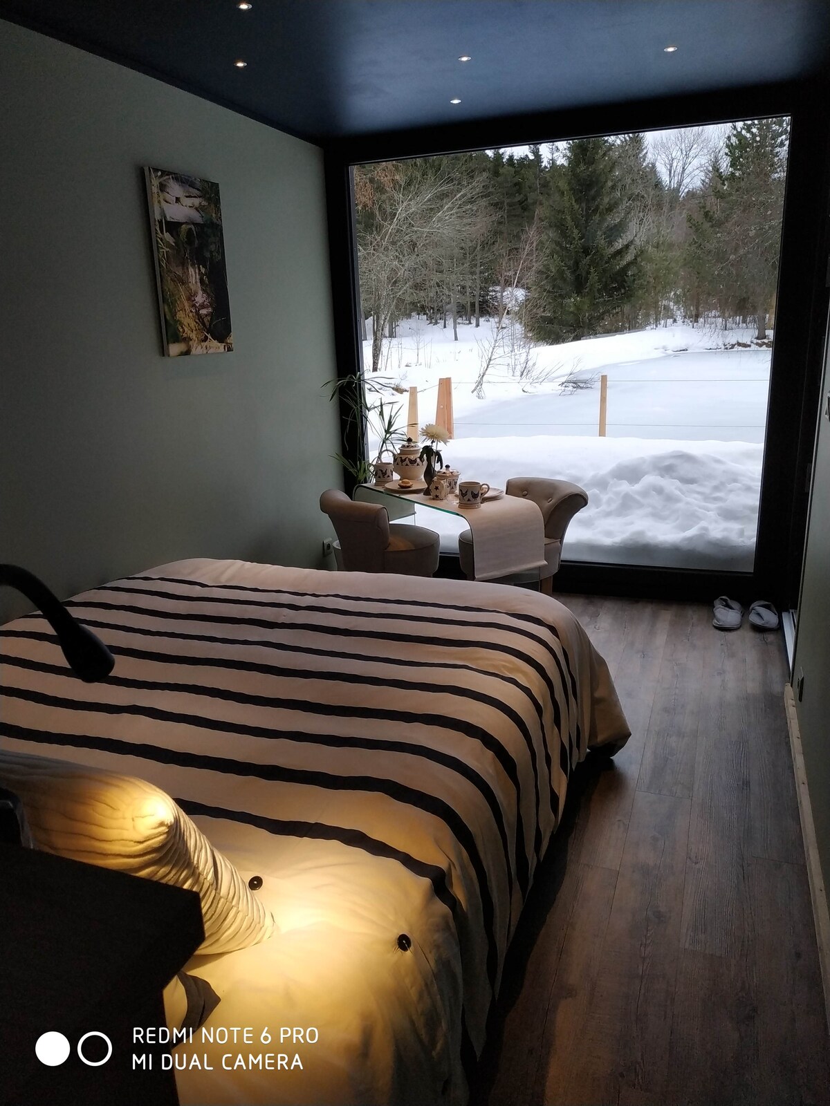 Dans Re(s)source, tout a été pensé pour vous permettre de profiter au mieux de la nature, du calme et de la sérénité que procure ce lieu unique préservé des ondes et des pollutions en tout genre. De quoi se (re)connecter à soi. Une grande terrasse attenante surplombe l'eau d'un lac enchanteur. Au gré des saisons, vous évoluerez avec cette nature qui vous laissera découvrir des paysages variés et magiques des « bois de Cheyne ». Un petit déjeuner salé ou sucré vous sera servi à l'heure désirée.