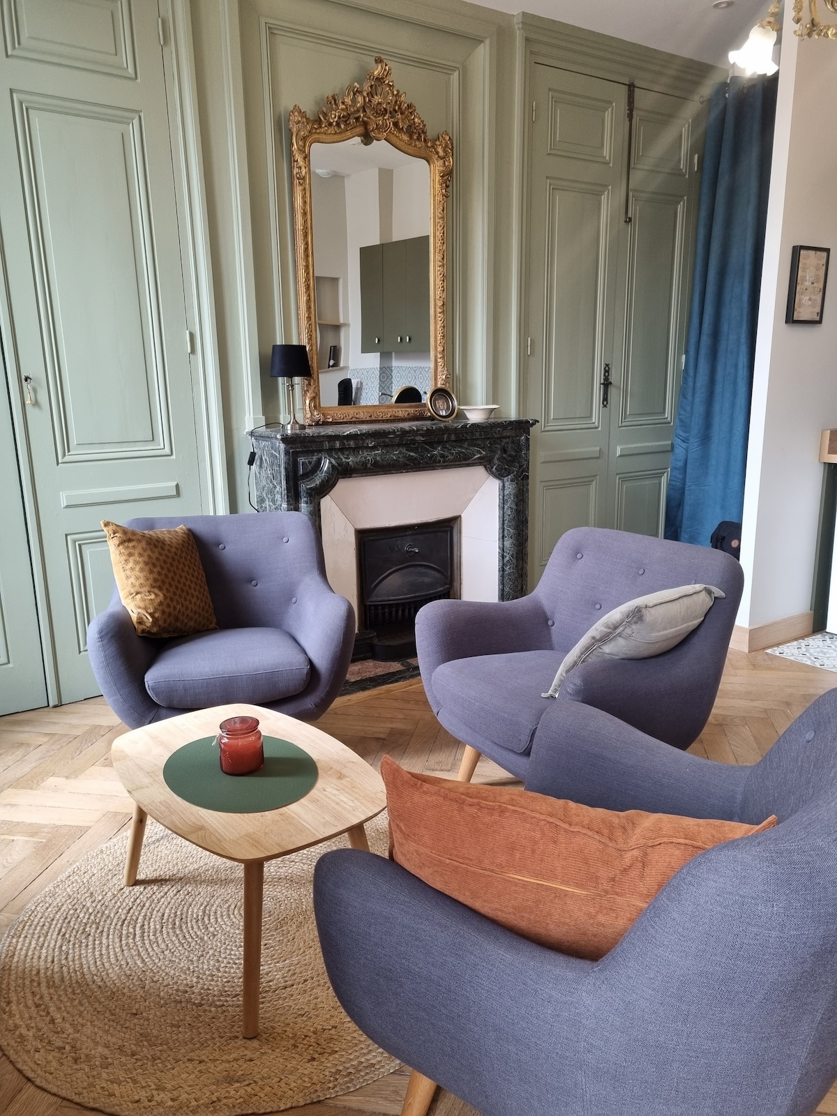 Un logement de 35 m2 élégant en centre-ville d'Yssingeaux, proche des restaurants, du théâtre, du cinéma, des commerces. A 10 mn à pied de l'école Ducasse. Wifi. Linge de lit et de toilettes fournis. Petit frigidaire, four, micro ondes, plaques induction, cafetière, théière, grille pain, vaisselle, machine à laver, penderie, commode, télévision, fer à repasser, aspirateur, jeux... Equipements neufs. Dans immeuble de caractère. Parking gratuit à proximité.