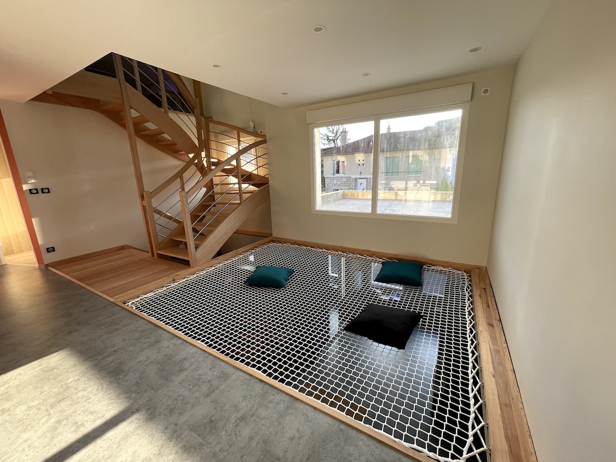 Découvrez le charme exceptionnel de notre logement à Saint-Étienne. Une mezzanine sous un ciel étoilé et un filet captivant vous attendent. Profitez de la baignoire balnéo double , de la cheminée et d'un écran géant avec vidéo projecteur depuis le lit ou le filet. Un garage privé et une entrée automatisée vous assurent confort et intimité. À quelques pas du Stade Geoffroy Guichard et du Zénith, cet espace unique promet une escapade romantique et magique.