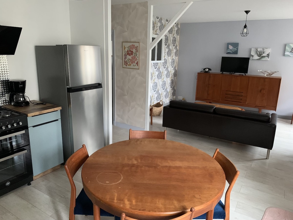 Logement de 35 m2 carré entièrement rénové, situé au 1er étage + Garage gratuit + Wifi + Netflix. Appartement très bien situé : - Gare de Chateaucreux : 5 minutes en voiture et 8 à pieds. Seulement à 1 km ! - Intermarché : 1 km - Centre commercial Steel : 2 km - Possibilité de prendre le bus à 2 pas de l'appartement. Il vous amènera à la gare, au centre commercial STEEL.. - Accès autoroute à 3 mn - Plusieurs commerces à proximité : boulangerie, super marché, bureau tabac, coiffeur, snack..
