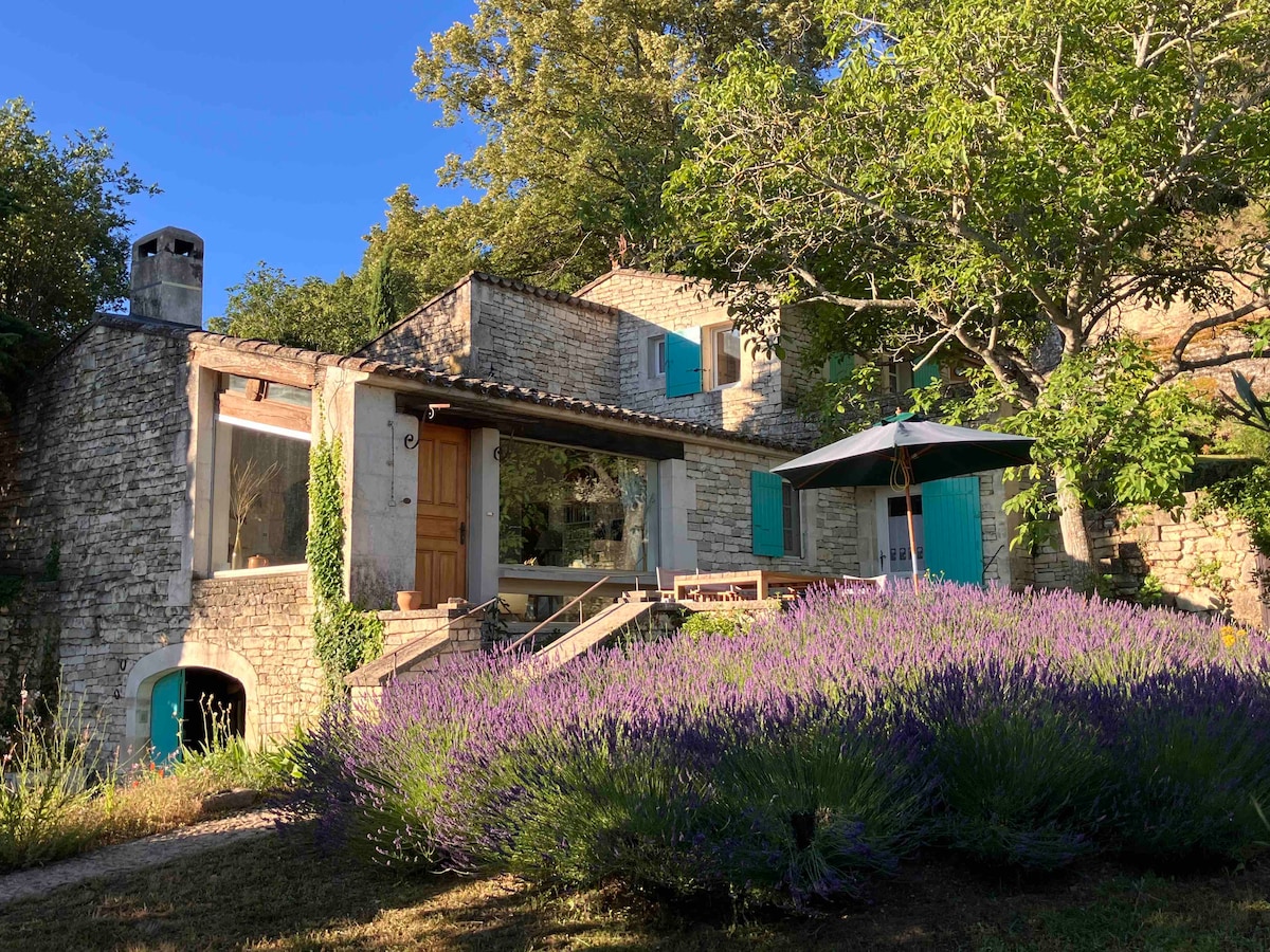 A beautiful stone house at the Bastide de La Chapelle, perched high above one of France's oldest villages. Renovated in 2023, with contemporary charm and luxe furnishings, a two bedroom two ensuite destination for a relaxing, special stay in Provence. Surrounded by the Luberon mountains, with exceptional views below. A small grotto pool awaits as well as a private terrace, garden, and BBQ. Fast fibre optic WiFi if you 'd like to work a little. Can be booked with La Chapelle ID2779429