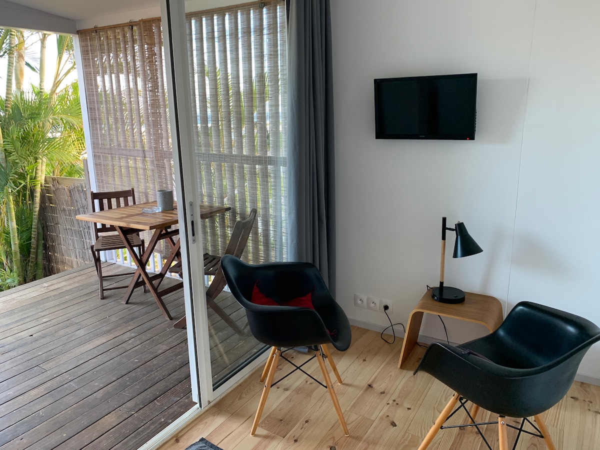 bungalow 17 m2 équipé ,avec terrasse couverte 13 m2 , en centre ville du Tampon, proche de commerce, restaurants, accès route nationale pour montagnes et Volcan, mer .en quelques minutes . Le logement dispose d' une place de parking privé. Discrétion et convivialité dans le respect de votre espace privé.