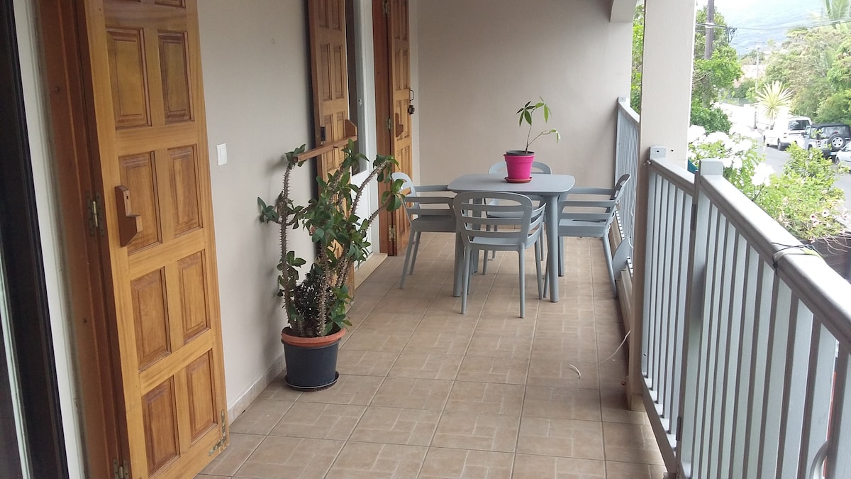 Logement indépendant à l'étage de notre maison situé à 20 mn de Saint-Pierre et des plages. De très bon standing, spacieux, terrasse de 36 m2 avec vue panoramique sur l'océan et la montagne dans un quartier résidentiel vraiment tranquille. Point de départ idéal pour les accès au volcan et les randonnées en montagne. Nous sommes un couple de retraités actifs, disponibles et amateurs de danses de salon. Nous sommes prêts à faire de notre mieux pour rendre votre séjour agréable. Parking gratuit.