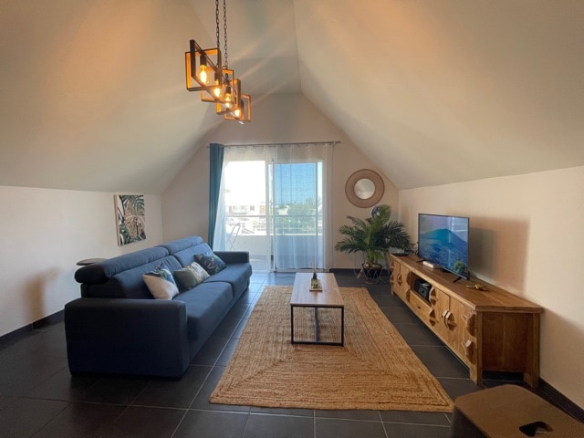 À 100m de la plage, on vous propose ce charmant T3 de 68m² situé en plein cœur de Saint Leu, petite ville balnéaire où il fait bon vivre. L'appartement, entièrement climatisé , se compose d'un séjour spacieux et lumineux avec cuisine ouverte, d'une varangue avec espace détente et coin repas, d'une grande chambre avec un lit de 180cm, d'une chambre avec un lit de 160cm, d'une salle de bain avec table à langer et d'un WC.
