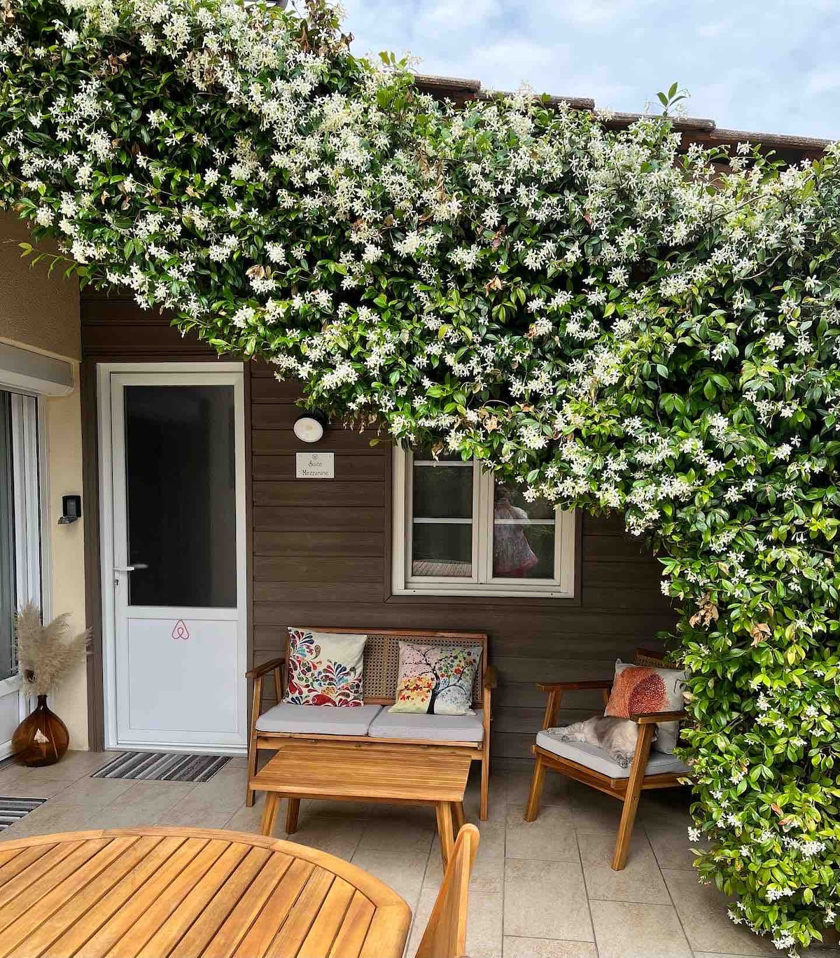 Welcome to Les Suites d'Aliénor. The Jasmin Suite is located between Château Haut Brion and Château Pape Clément. Functional accommodation for 2 people, for vacation or business. Renovated and equipped studio adjoining our house with independent access (large garden with swimming pool, shared space with another 2-person cottage). We provide sheets and towels. Located close to public transport and shops, a 10-minute drive from Bordeaux, its heritage, and vineyards.