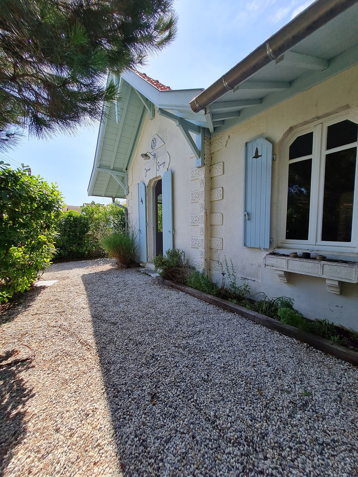 Maisonnette située au coeur d'un grand jardin arboré, au calme, à proximité de la piste cyclable, des forêts, de l'eau-baignades - plages océanes & plages du bassin, activités nautiques, ports ostréicoles & de tous commerces. Terrasse ombragée & hamac. Confort : linge de lit, de toilette, de cuisine & vélos à disposition. Accueil jusqu'à 3 pers. Bb/enf. bienvenu. Télétravail : bon réseau wifi (routeur). Accès facile Arcachon & Bordeaux. A l'envie, petit déj' à la carte en supplément sur place.
