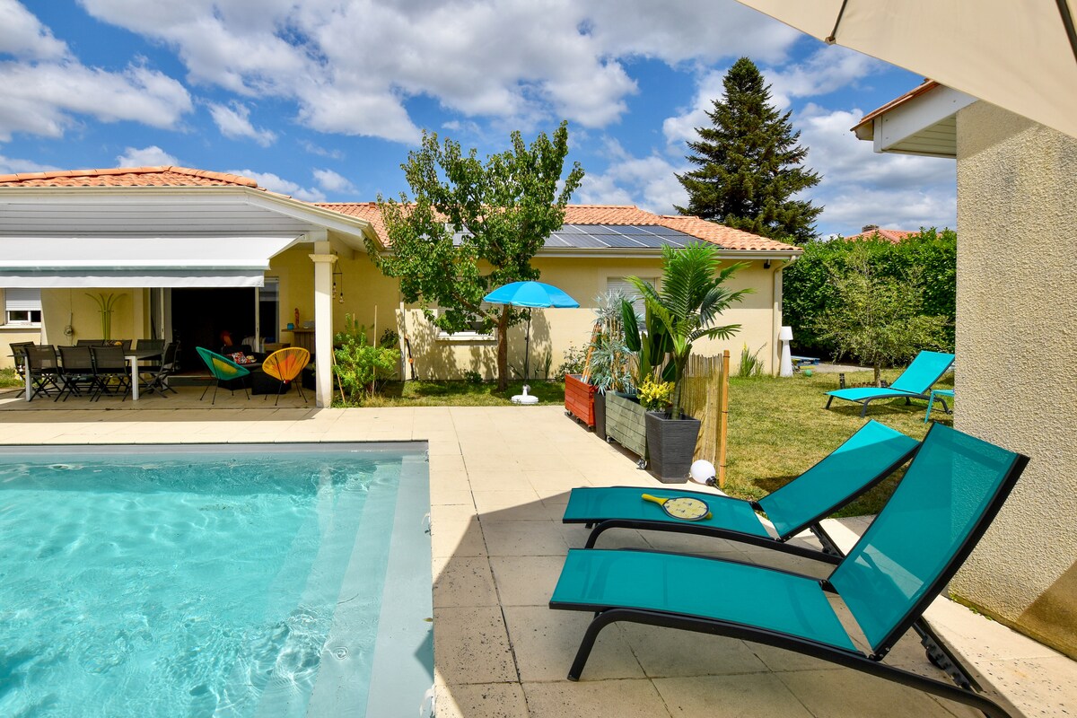 Studio de 20m2 indépendant de notre maison principale avec un accès au jardin et à la piscine (5mx3m) sécurisée et chauffée (juin à septembre), places de parking gratuites dans la rue. Il se compose : - un lit de 140x200cm -un dressing avec cintres -une cuisine entièrement équipée : évier, micro-ondes, plaque, Dolce Gusto, grille-pain, bouilloire, frigo, vaisselle, coin repas -TV et Wifi -une salle d'eau avec WC, douche italienne - serviettes de toilettes/toilettes, torchons, draps -ventilateur