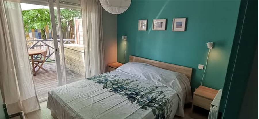 Le chalet se comporte d’une chambre avec un lit double, d’un lit mezzanine en 90 un lit bébé, une kitchenette fonctionnelle, équipée d’un coin repas, une salle d’eau indépendante des toilettes pour plus de confort. Le chalet est climatisé et équipé de moustiquaires aux fenêtres. Le linge de lit, de toilette et de cuisine sont offert. Le ménage et les animaux en supplément. Il n’est pas possible de recharger votre véhicule en électricité Il y a des bornes en centre ville.