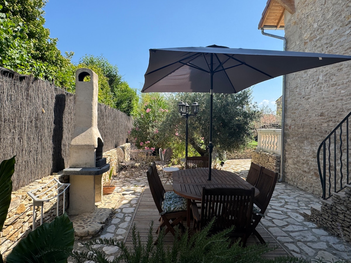 Maison atypique à toit plat et bardage naturel pour une intégration parfaite dans son environnement. Sur une parcelle de 1200 m2 arborée d'oliviers et de plantes xérophytes, venez profiter, à l'écart des regards, du calme de la campagne méditerranéenne. Une terrasse en bois, un jacuzzi en inox et un braséro focus vous attendent pour des moments de détente inoubliables à 2 !