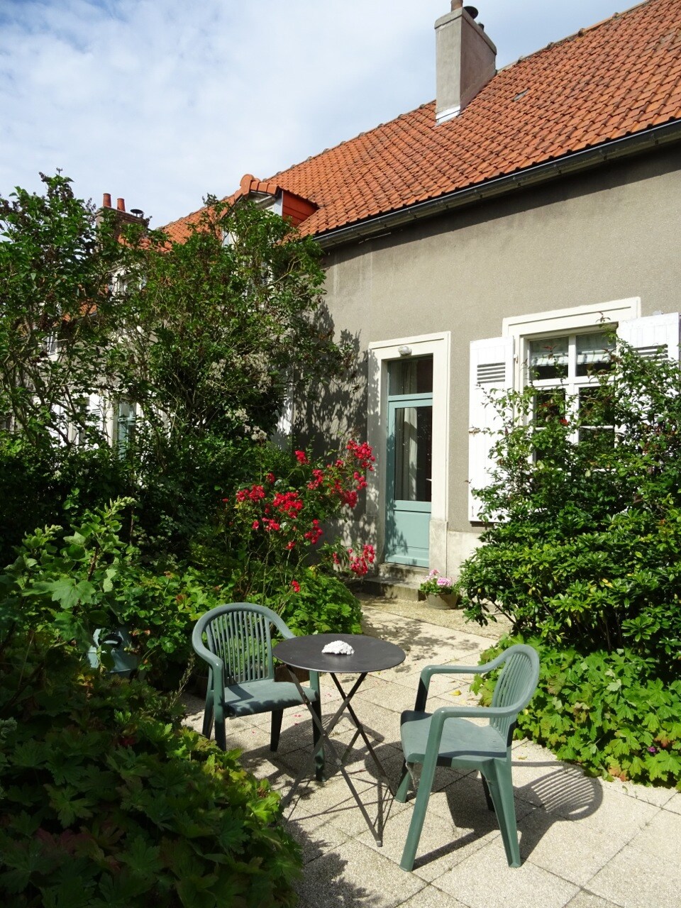 Are you looking for a comfortable place to stay for 2 people in a village near the sea? Perhaps you are interested in ecology? The Artists Den is just right for you all the year round. The holiday flat is situated in the center of the charming village of Wimille, about 2km from the coast. It is independent, with private access, sunny terrace and a grand jardin cultivated without pesticides. 2 bikes are available to ride to the beach and a wood stove will keep you cosy when its cold outside.