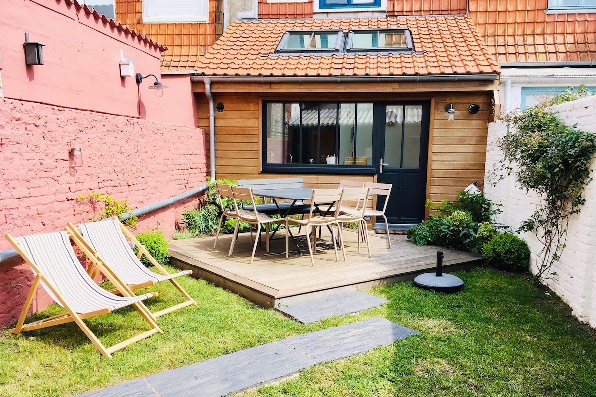 Bienvenue dans notre maison de pêcheur. Le centre ville d'Etaples-sur-Mer et son petit port de plaisance sont à proximité vous pourrez faire votre marché à pied ou à vélo. La piste cyclable au pied de la maison vous mèneront jusqu'aux plages du Touquet (5km) ou Saint Cécile(8km). extérieur vous permettant de prendre le petit déjeuner ou l’apéro. Parking gratuit dans la rue ou sur le port (route à traverser). Je loue le linge de lit à 10€ et le linge de toilette à 10€.