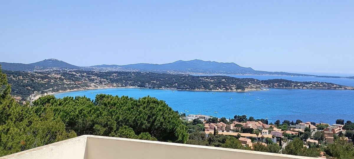 The delightful terraced villa Marjalou 3, featuring two bedrooms, is positioned above the enchanting Aiguebelle bay, offering captivating southwest-facing views of the Mediterranean Sea and the surrounding islands. Steps on the side of the house, lead to a private heated swimming pool, surrounded by a lush and green garden. Its tranquil and serene setting makes it an ideal destination to unwind, relax, and fully enjoy your vacation in the beautiful South of France. Security deposit required.