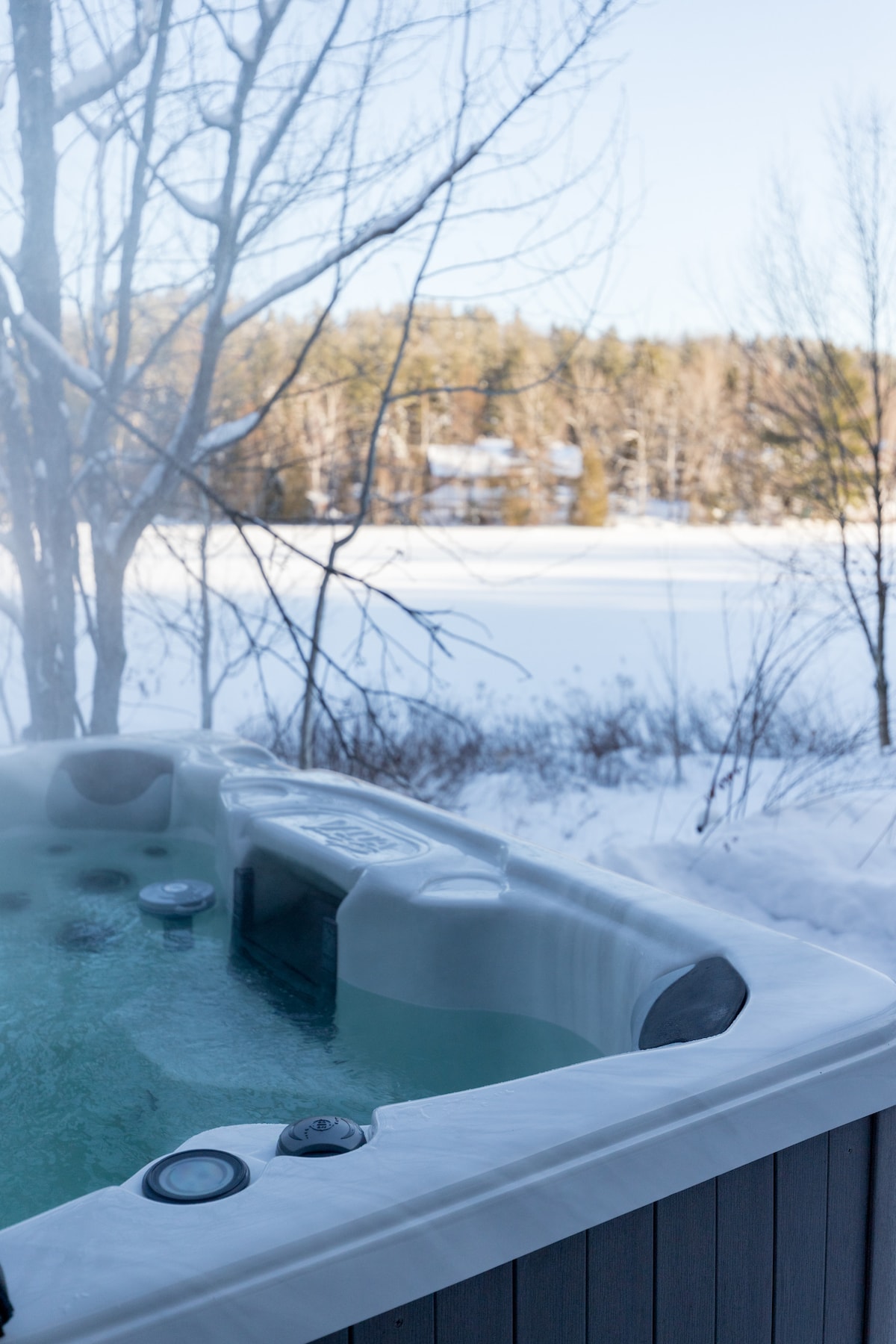 Beautiful log wood cottage with a cathedral roof and a wood stove, located right on the shores of Lac Desmarais in Estrie. The dock is the ideal spot for relaxing. The private lake is a protected area (no gas-powered motors allowed) and is brimming with trout and other species of fish each year. A paddle board, canoe and kayak will be at your disposal. The hot tub is available for use all year round. Starting January 2021 : 1 booking = 1 tree replanted through Tree Canada
