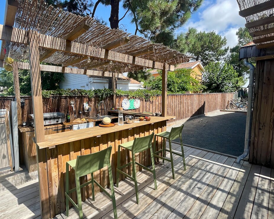 À 50 m de l’océan, ce chalet bois lumineux (75 m²) combine confort, accessibilité et sérénité. Adapté PMR (salle de bain équipée, circulation aisée), il dispose de 3 chambres, d’une clim réversible, d’une cuisine haut de gamme et d’un séjour avec fibre + Netflix. Jardin clos, terrasse ombragée, plancha et pétanque pour vos moments conviviaux. Voyagez léger : linge & serviettes fournis, lits faits à l’arrivée, ménage inclus. Idéal familles, télétravail et séjours longs.