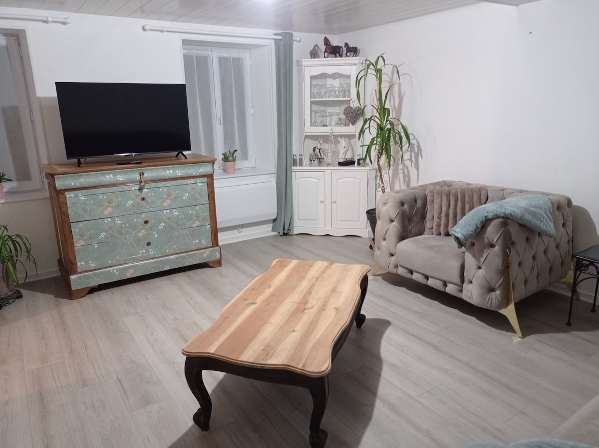 145 m2 de silence total en pleine nature rénovés tout récemment Grandes pièces de vie, deux suites parentales queen et king size, salle de détente, jardin avec plusieurs terrasses Déco mixant authentique, contemporain et quelques touches artistiques A partager en famille, entre amis, en amoureux Randos pédestre vélo départ gîte A 4 kms d'un plan d'eau WiFi et télé connectée si besoin de se relier au monde 😉 Ateliers couture bohème face aux volcans en option dans une magnifique structure voisine