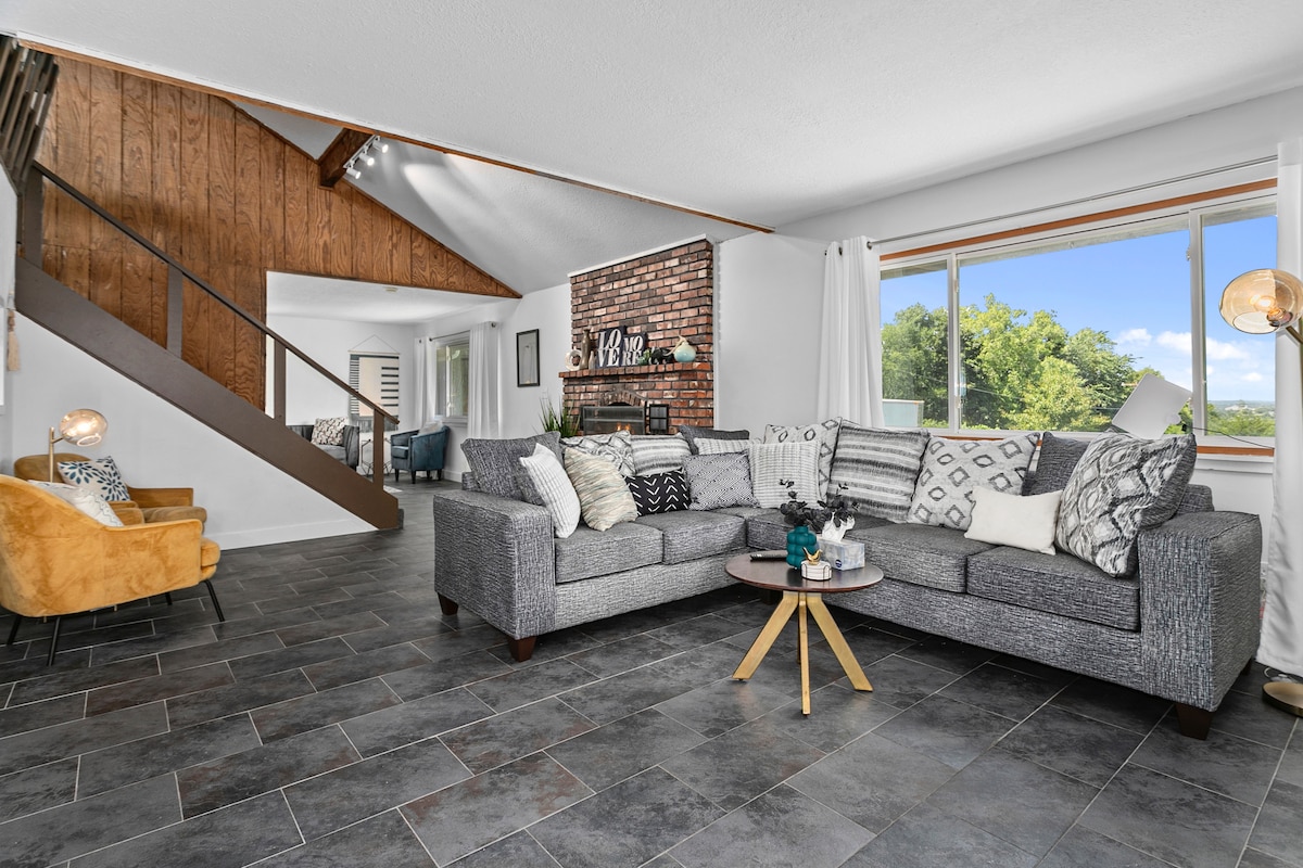 Three bedrooms (one queen and four twin), two tiled bathrooms, a twin-over-twin bunk and a sleeper-sofa. House sleeps nine comfortably. Six smart TV's. Dogs allowed! Large, fenced backyard. Two washers and two dryers. Basement is dedicated playroom and has a large arcade, pool table, skee ball, foosball, basketball machine, Barbie House and play kitchen. Dozens of board games and outdoor toys. Ultra-fast internet. Easy 20-minute drive from both from the airport and Legends Mall and Plaza.