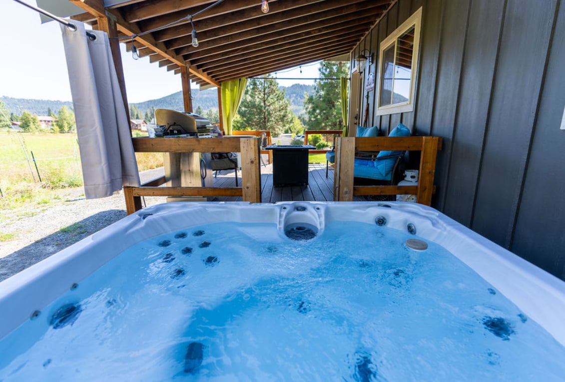 Imagine a private oasis that places you in the heart of Leavenworth with incredible mountain views from the private deck. Short drive to river access, hiking, biking, winter sports and the Bavarian Village. This gorgeous vacation rental is 1,500sf, has its own entrance and is all self contained with a large, stocked kitchen, living room, bedroom, bathroom with rain shower, washer/dryer, smart tv, private hot tub & more! Not small child friendly. NO PETS/NO EXCEPTIONS. STR 000754