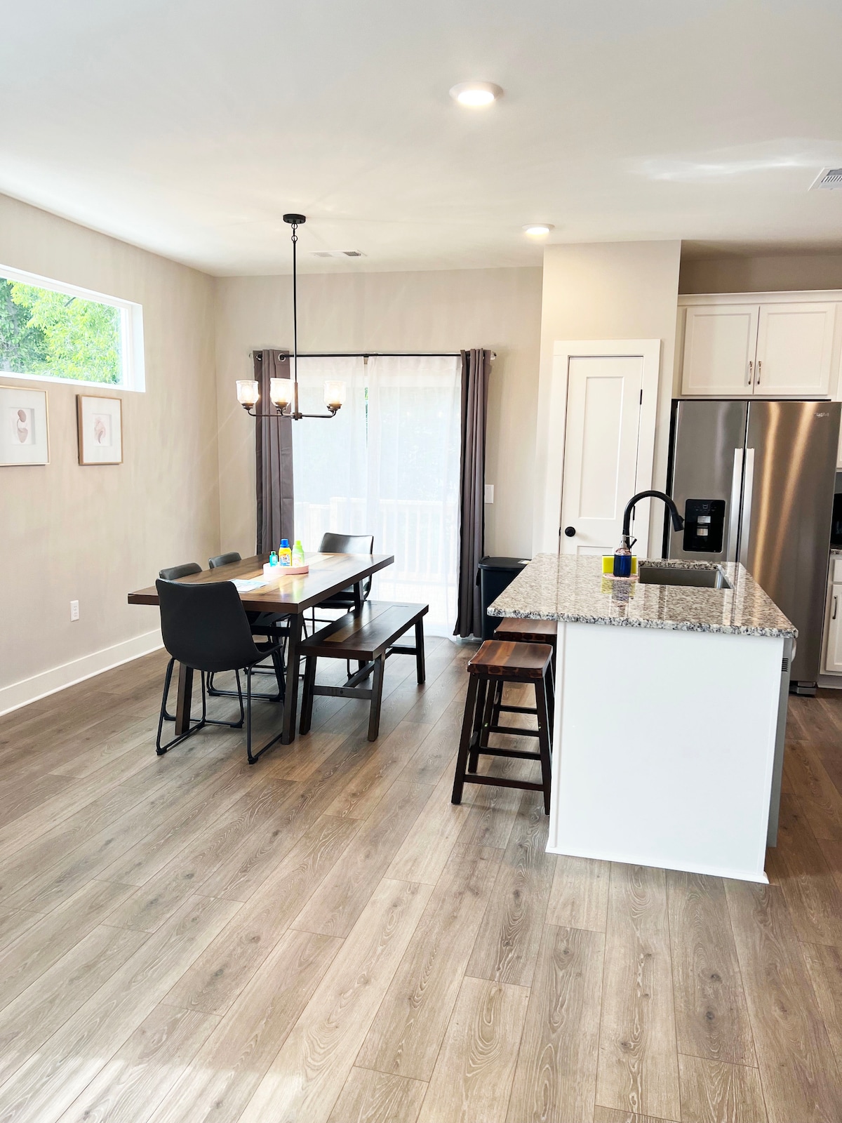 Whether you’re visiting for work or leisure, this 3-bedroom, 2.5-bath townhome has you covered. The open-concept main level features a fully equipped kitchen, island seating, dining table, smart TV, and workspace. Upstairs you’ll find a king primary suite with ensuite bath plus 2 additional bedrooms sharing a full bath. The second bedroom has a queen bed and the third has a full over full bunkbed for hosting your entire family. Enjoy the added convenience of an in-unit washer and dryer.