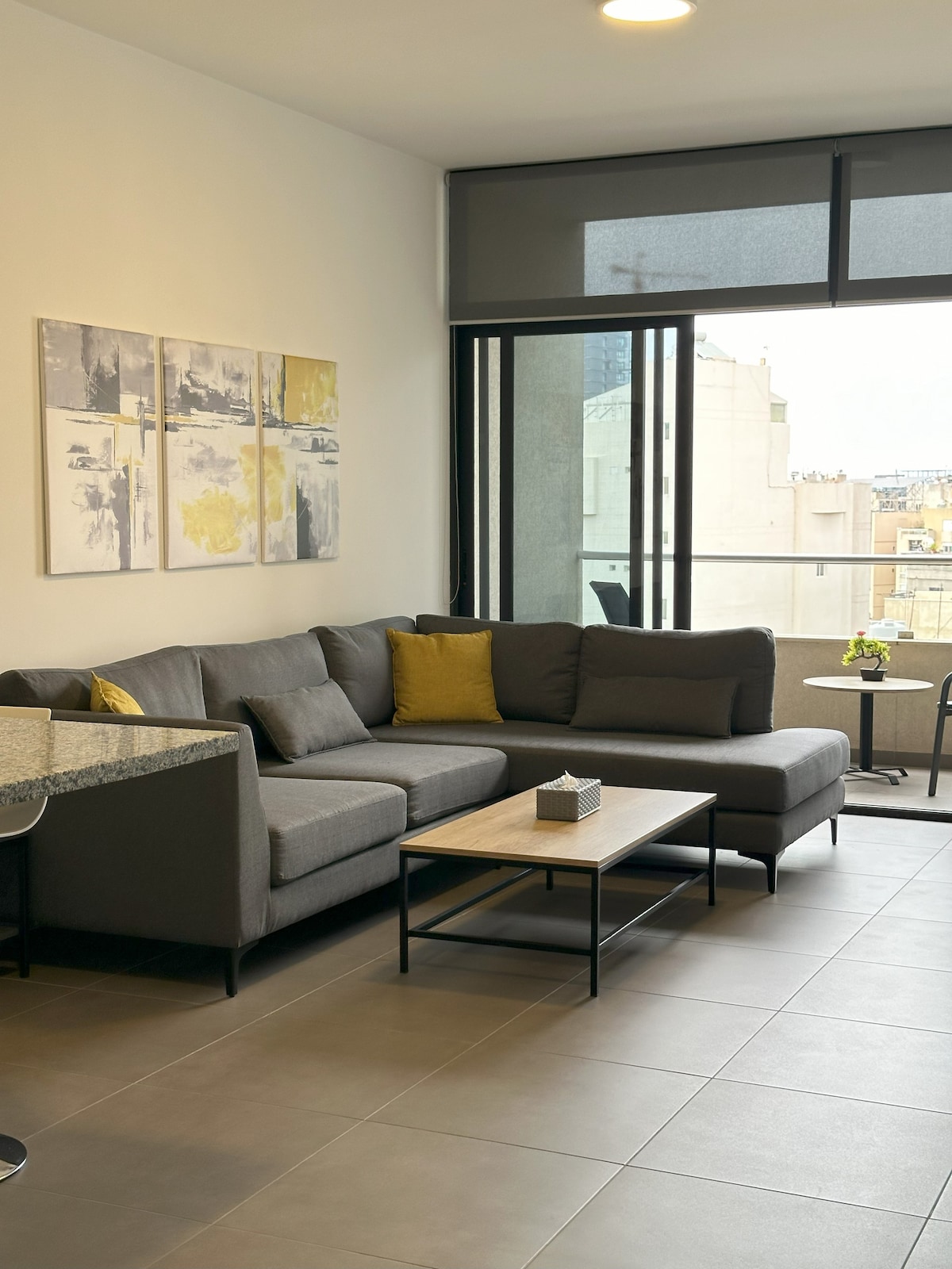 Your Ideal Home Base in Lebanon Stay in a stylish 1-bedroom suite in a newly built apartment-hotel, perfectly located on a quiet street just off the Metn and Beirut-Tripoli highways - offering direct access to all parts of the country. The apartment features a spacious living room, fully equipped kitchen, private balcony - ideal for both short and extended stays. Enjoy a 5-star experience with free Wi-Fi, concierge service, two elevators, laundry facilities, and secured parking.