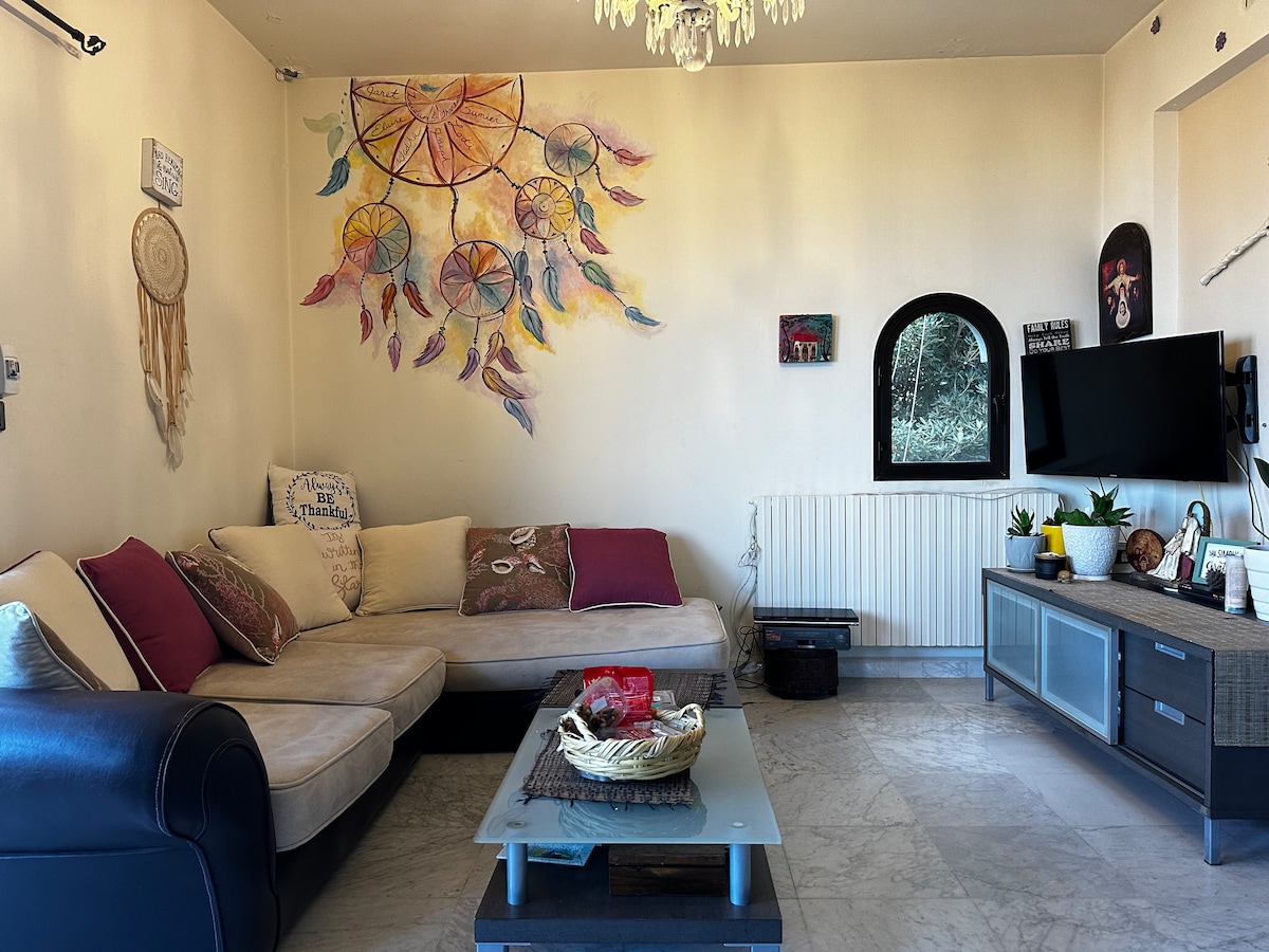 Unwind at our at our nature-inspired wellness retreat and Guest House, with an idyllic blend of outdoor spa and pool. Immerse yourself in a wholesome, organic haven within our garden, indulging in meals straight from our kitchen. Ideal for a small family or intimate group, this suite offers panoramic sea and mountain views. Only a 7-minute drive to Bahsa Beach, Batroun's historic souk, vibrant nightlife, and pristine beaches. Your escape to tranquility awaits.