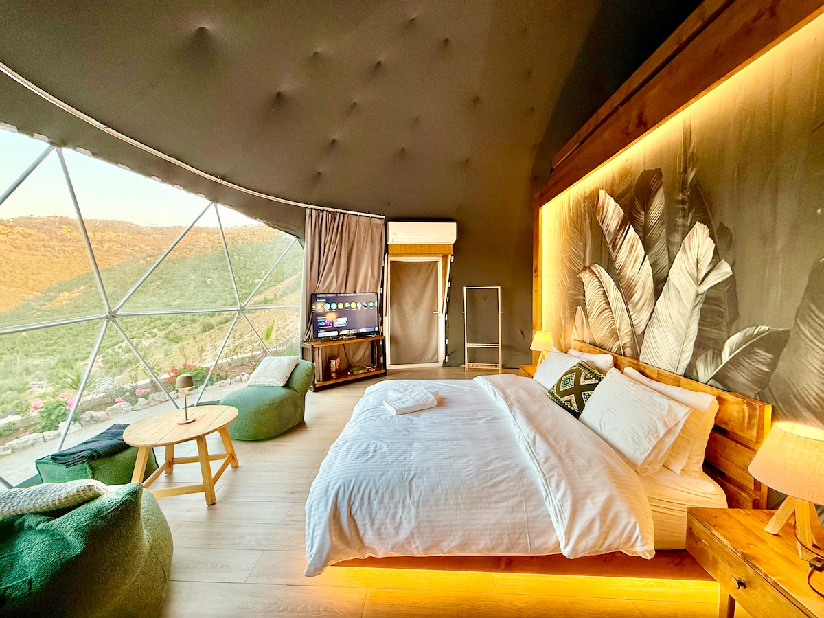 🌌 Welcome to Your Magical Dome Escape! ✨🌌 Escape the city and immerse yourself in nature at Dome du Hemlaya, a beautifully designed dome nestled in the lush hills of Mt. Lebanon. Perfect for romantic getaways, small group retreats, or solo travelers seeking tranquility, this unique glamping experience combines comfort, privacy, and breathtaking mountain views. Please note that the jacuzzi is closed until summer.