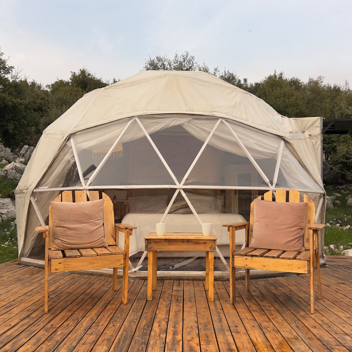 🌌 Welcome to Your Magical Dome Escape! ✨🌌 Escape the city and immerse yourself in nature at Dome du Hemlaya, a beautifully designed dome nestled in the lush hills of Mt. Lebanon. Perfect for romantic getaways, small group retreats, or solo travelers seeking tranquility, this unique glamping experience combines comfort, privacy, and breathtaking mountain views. Please note that the jacuzzi is closed until summer.