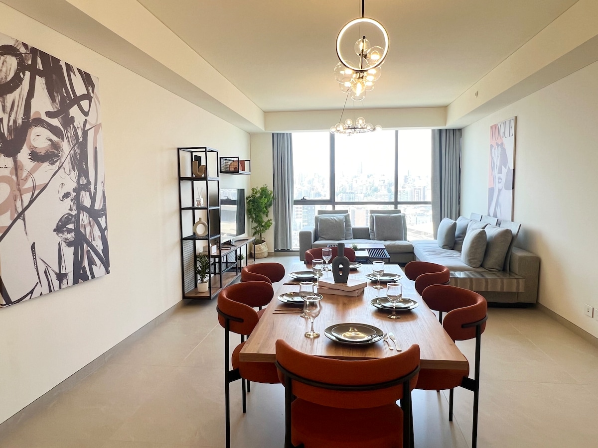 Enjoy a luxurious and stylish experience at this modern 2 bedroom apartment , our guests(only long stayer )are entitled to enjoy a range of high end amenities, including a swimming pool, fitness center, spa ,kids playground and kids pool. The apartment provides 24/7 security and concierge services insuring a safe and comfortable living experience for all residents. Located on the 20th floor, the apartment overlooks beautiful city view from all rooms