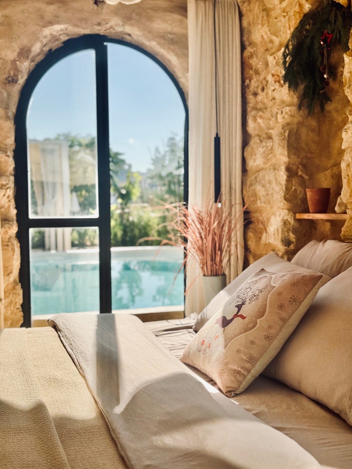 Discover historic Batroun from our charming retreat, part of a 400-year-old structure with a storied past. This self-contained apartment features a plush double bedroom, a private ensuite bathroom, a living area and a handy kitchenette. A small veranda for relaxation and dining. Conveniently located, Batroun Souq is just a 10-minute walk away, with local beaches, eateries and shops at your doorstep. Electricity and air conditioning included.