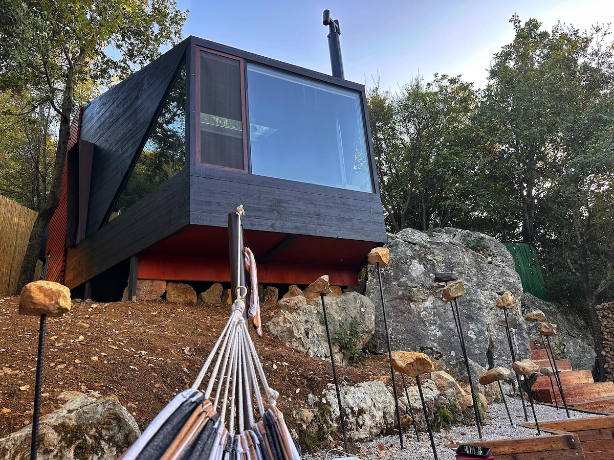 Cozy, private treehouse with outdoor pool, heated indoor hot tub, panoramic views, and smart projector with Netflix. Includes king size bed, full bathroom, kitchenette, BBQ, firepit, hammock, board games, and WiFi. The newest of the four unique treehouses of SEVENOAKS, built on the same land — perfect for couples or friends booking together. Breakfast, wine/cheese platters, and delivery service available. A peaceful escape in nature, just 40 min from Beirut.