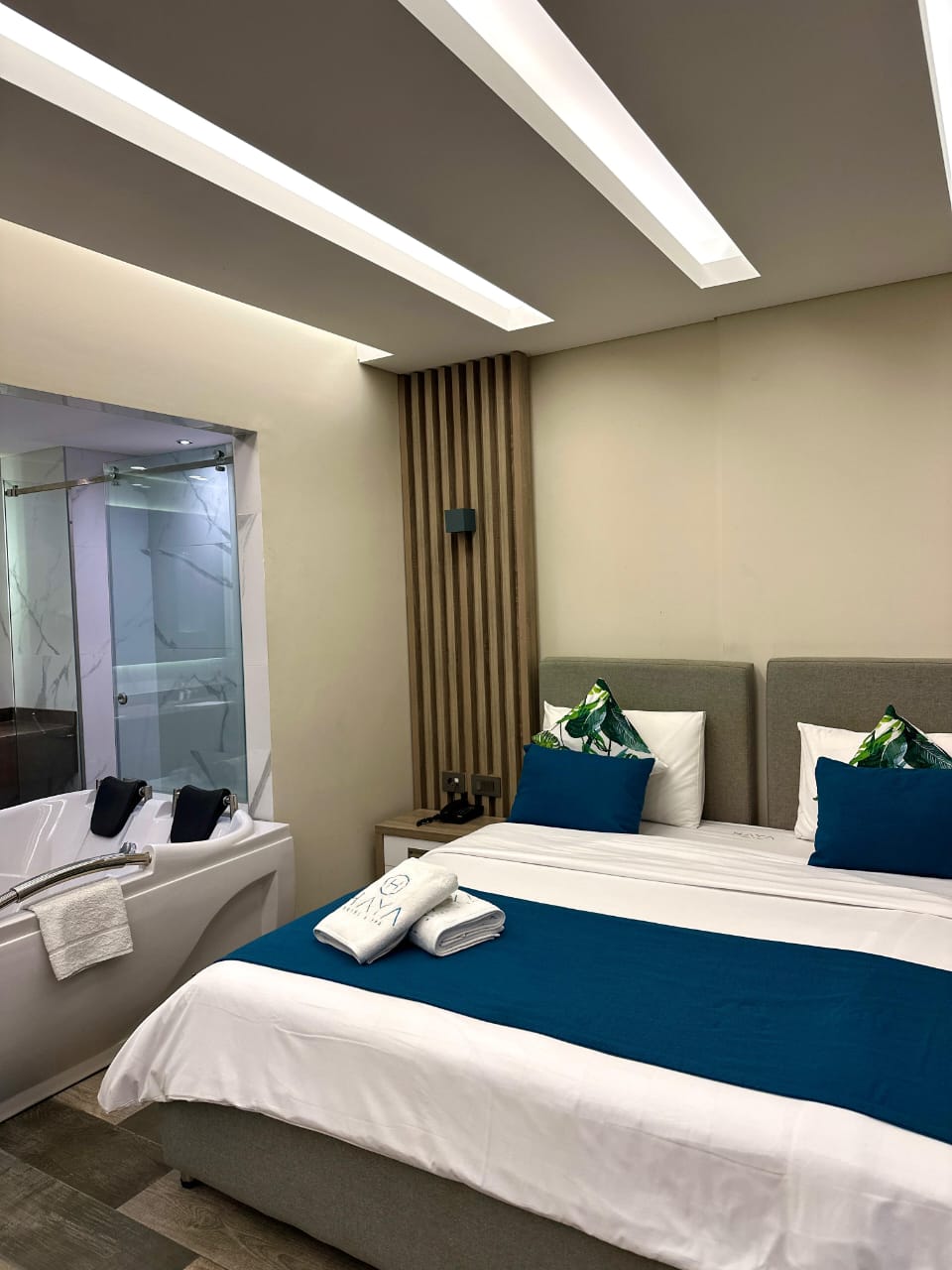 Step into comfort in our stylish Deluxe Room with Sea View, a serene retreat in the heart of Jounieh, just 200 m from the sea. The room is elegantly furnished in modern tones, offering a choice of a twin or double bed, a private bathroom with bathtub, air conditioning, free Wi‑Fi, minibar, flat-screen TV, and tea/coffee station