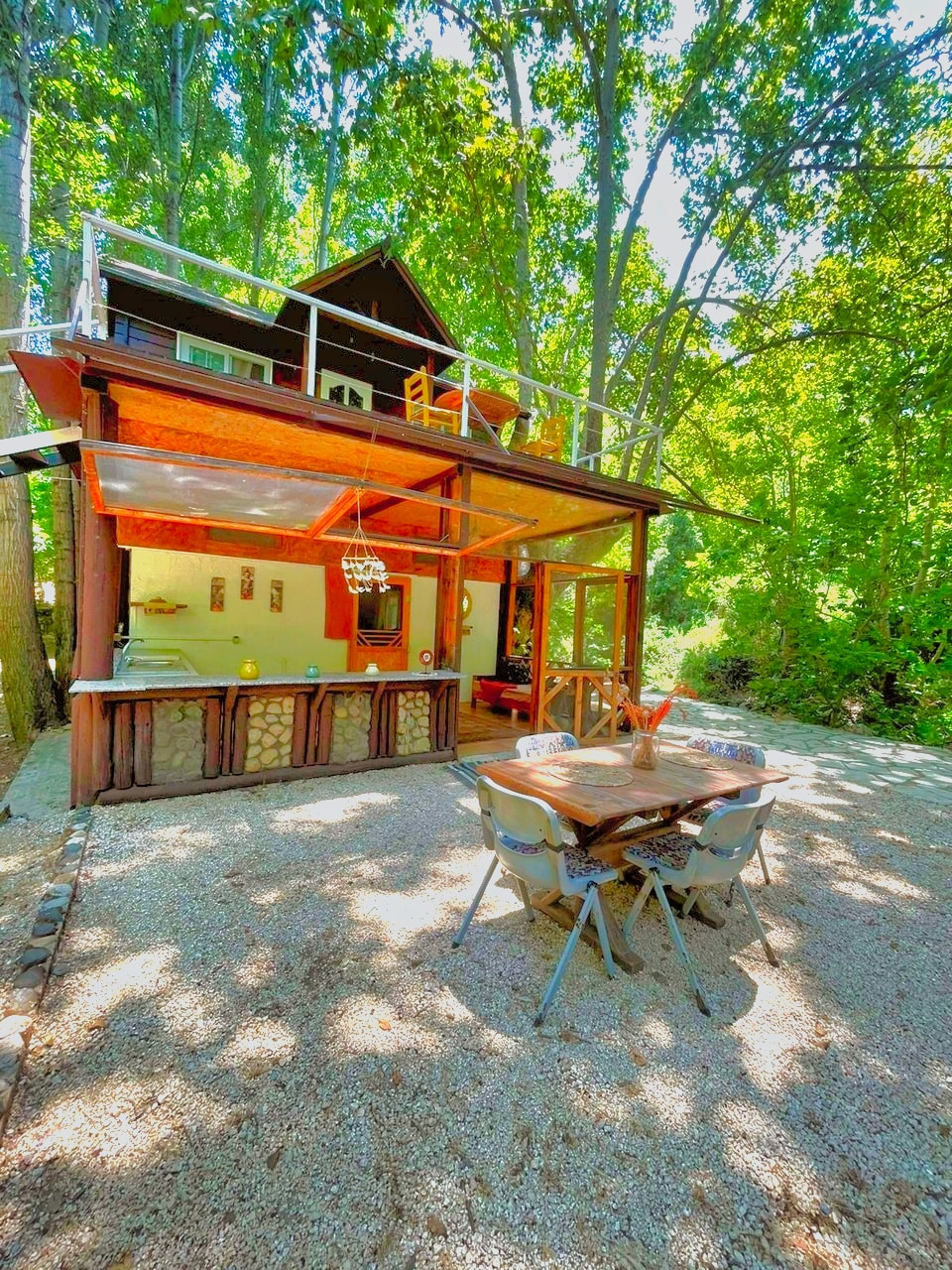 Kick back and relax in this A-shaped, stylish wooden cabin with spacious outdoor space and a private Jacuzzi . Hosted by Riverside Jahliye, located only 35 minutes away from Beirut. Have a walk by the tranquil river right next to your cabin and experience the ultimate mountain retreat. The cabin boasts a cozy interior with warm wood finishes, providing a welcoming atmosphere for relaxation after a day of exploring the scenic surroundings. Enjoy the mountain view from the comfort of your balcony.