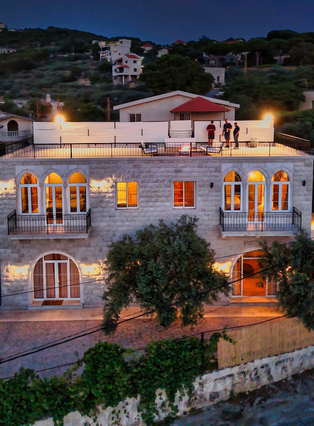 Seafront sandstone villa with private pool near Taht ElRih beach, with authentic wood ceiling & amazing sunset view, its modern expansion preserves the traditional aspect with modernity & serenity. It feels like home away from home, in a historic area with old churches and archeological sites steps away. The town has old monasteries & places to visit. The remains of a Phoenician & Crusaders fortress lay in front of it, people can swim & have local seafood at the nearby beach & town restaurants.