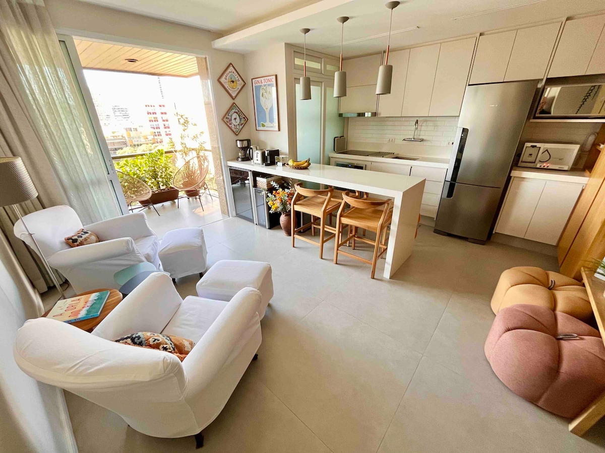 Breathtaking view from the rooftop pool. Fully renovated apartment: living room with a smart TV, sofa bed and dining table. Balcony with table and chairs. Air conditioned bedroom with a comfortable queen size bed, wardrobe and safe. 100% cotton sheets and quality towels. One block from the world famous Leblon beach. Surrounded by restaurants, bars, shops, grocery store, local juice stores and much more. Parking available. 24h reception. Gym and laundry service available in the building.